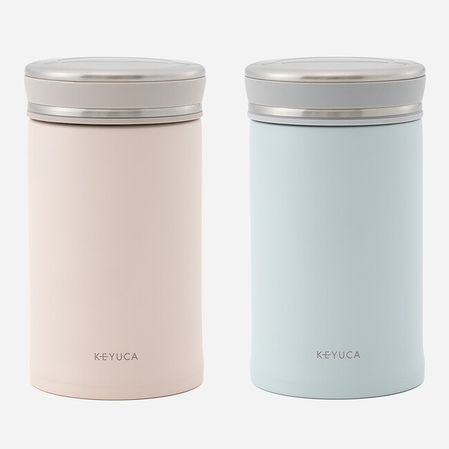 細長形状で収納しやすく、またグリップ付きで開け閉めしやすいフードジャーです。ステンレスの真空二層構造で、保温保冷効果もあるため、スープだけでなく、汁気の多いおかずやフルーツなどの冷たいものの持ち運びにも最適!カラーを合わせたランチボックスとジャーで、寒い時期のランチも楽しく過ごせます。