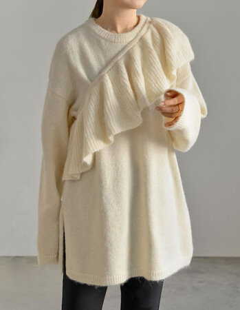 取り外しもできるフリルニットとセットになっており、フリルを外すとシンプルなチュニックとして着回しが可能です。