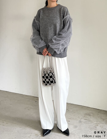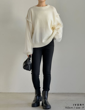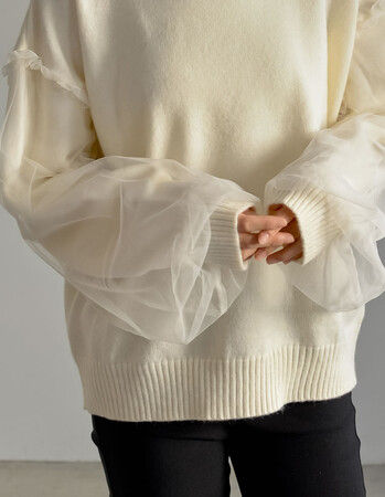 アルパカタッチボリューム袖チュールニットプルオーバー