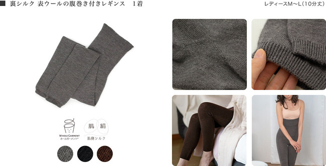 肌側しっとり天然シルク・表はあたたかい起毛ウール おなかまであたたかい腹巻き付きレギンス