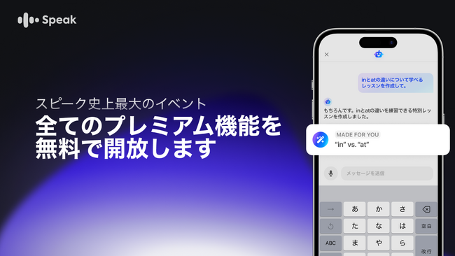 Speakeasy Labs, Inc.(本社:アメリカ合衆国カリフォルニア州サンフランシスコ、CEO:Connor Zwick、Head of Japan:Yan Kindyushenko、以下「Speakeasy」)は、2023年12月18日(月)よりプレミアム機能を無料で試せる期間限定のキャンペーン「アンロックキャンペーン」を開始しました。