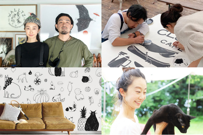 猫をモチーフにしたデザインも多く手がけ、魅力的なアートワークで、数多くのお店やホテルなどのアートビジュアルやロゴをデザイン。