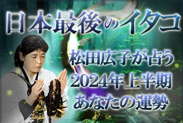 日本三大霊場の一つである恐山で降霊を行う、日本最後のイタコ・松田広子の公式占いサイト『恐山の秘術【最後のイタコ】松田広子』は、この度「松田広子が占う2024年上半期あなたの運勢」特集ページを一般向けに公開致しました。まだ会員登録されていないお客様でも2024年の運勢をお試しで占っていただけるページとなっています。