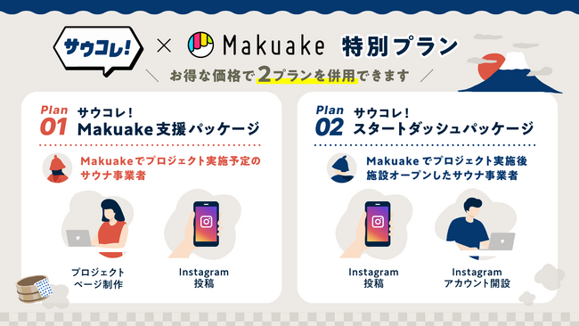本サービス連携により「サウナコレクション」が提供する「Makuake」特別プランは、「サウコレ!Makuake支援パッケージ」と「サウコレ!スタートダッシュパッケージ」の2つのプランです。