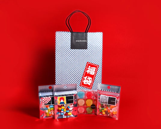 パパブブレの代表商品である「フルーツミックス」と、食感が特徴的なグミ「バブレッツ9個入」に加え、限定キャンディの「辰年ミックス」「正月ミックス」が入った3,330円相当がお得に楽しめるセットです。また、オリジナルグッズや大人気のコットンキャンディなどが入り公式サイト限定で展開している「プレミアム福袋」も、数量限定で店舗にて販売いたします。