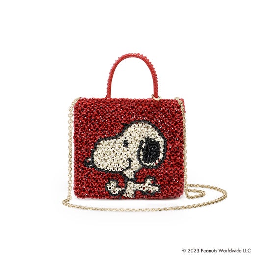 愛らしいスヌーピーをあしらったミニチェーンバッグ。取り外しのできる付属のチェーンはアレンジができ、ショルダー、斜めがけの3WAYでお使いいただけます。シルバー、シルバーゴールドの2色は全店にて発売。エナメルレッドは伊勢丹新宿店、大丸梅田店、アンテプリマ・オンラインストアでの先行発売です。スヌーピーのエッセンスを閉じ込めた遊び心のあるコンパクトなバッグはコーディネートのアクセントに。