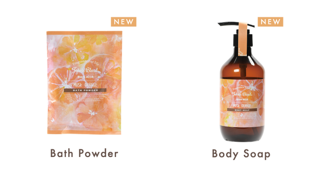 ボディソープやバスパウダーには、ムスクオレンジの香りに合わせたこだわりの植物生まれの保湿成分を配合し、よりバラエティ豊かなラインナップを目指しました。