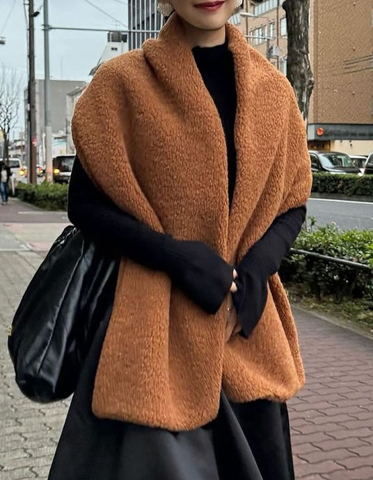 ふんわりもこもこのボア素材を使ったショールが新登場。