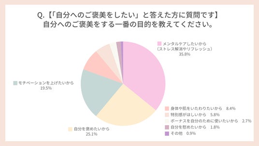 次に「自分へのご褒美をする」と答えた方へ「自分へのご褒美をする一番の目的を教えてください」と質問しました。