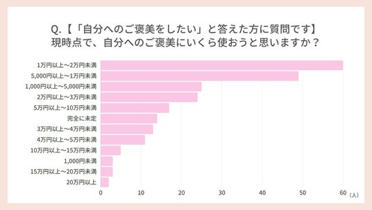 そこで「自分へのご褒美をする」と答えた方へ「現時点で、自分へのご褒美にいくら使おうと思いますか?」と質問したところ、下記の結果となりました。