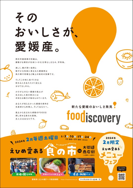 新たな愛媛のおいしさ発見!愛媛県(えひめ愛フード推進機構)では、2024年2月に旬の愛媛県産食材とグルメに出会えるイベントを開催します。