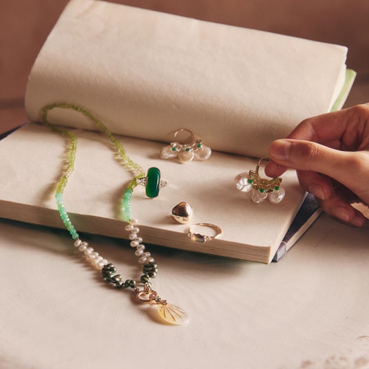 日本に魅せられ、夢中になった印象派の画家たちが描き出したようなやさしい色を表現したアイテム。また、以前人気だった商品のデザインを一新した、少し和を感じさせるような地金パーツがアクセントになるネックレスなどが登場。