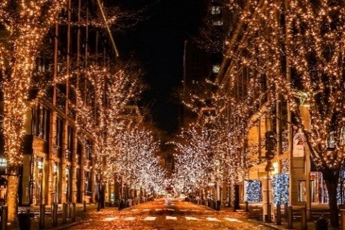 有楽町駅前の東京交通会館や大手町仲通りまで、丸の内エリア内約 360 本を超える街路樹が、シャンパンゴールド色の LED 約 120 万球で彩られます。お買い物やお食事の帰り道にも、丸の内エリアの冬の風物詩をお楽しみいただけます。