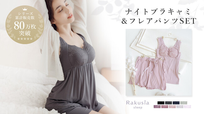 tu-hacciの人気No.1ナイトブラがルームウェアとひとつになった「ラクシアスリープ」。1枚着るだけでバストケアもしながらゆっくりおうち時間も楽しめます。キャミソールとフレアパンツのセットが5位にランクイン。