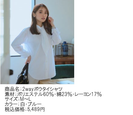 働く女性の代表である「オッジェンヌ」のお声を反映した2wayボウタイシャツは、カフスやボウタイの長さや幅など細部にこだわり、1枚でも着映えするデザインにしました。ニットとのコーディネートではボウタイが見えるように着用することで、エレガントさを演出できます。