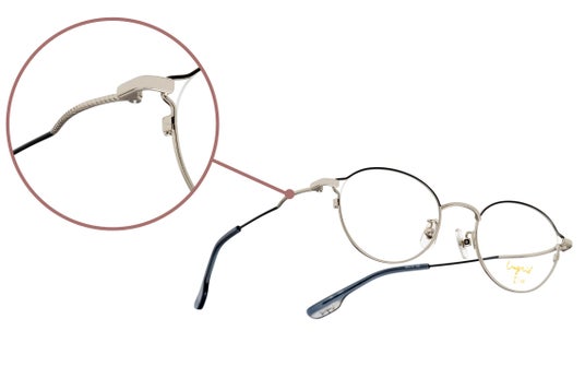 モダン先に丸い張り合わせを取り入れた可愛いデザインのボストンシェイプ。テンプルを細くし、七宝で彩りを加えることで、横顔を美しく演出。