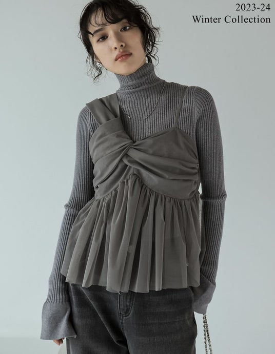 ソフトチュールアシンメトリーデザインキャミソールトップス