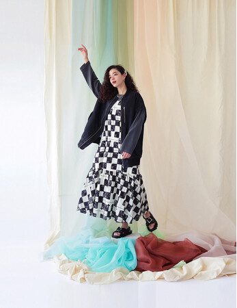 【手描きブロックチェックプリントワンピース】