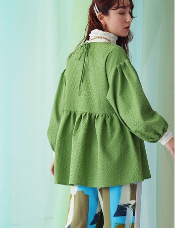【膨れジャガードカットソートップス】