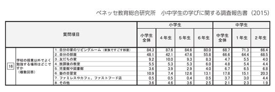参照:学校の授業以外でよく勉強する場所(子ども調査)