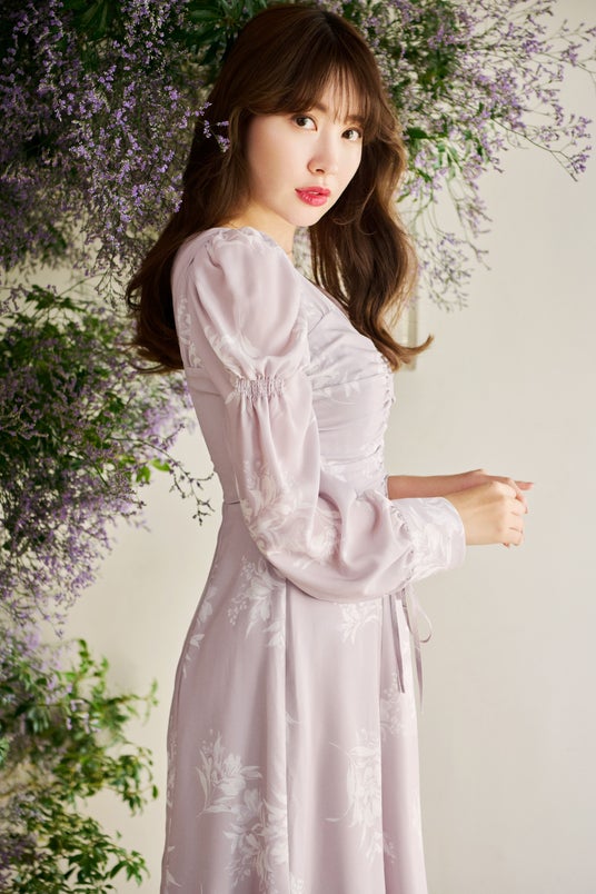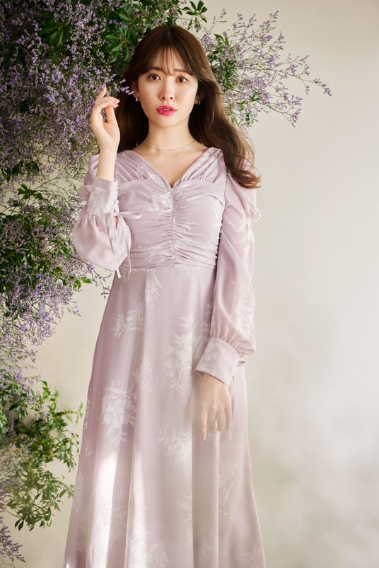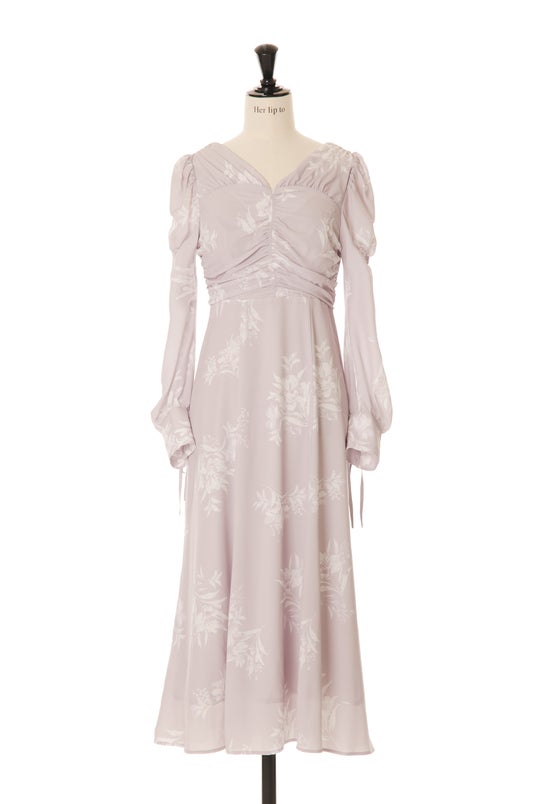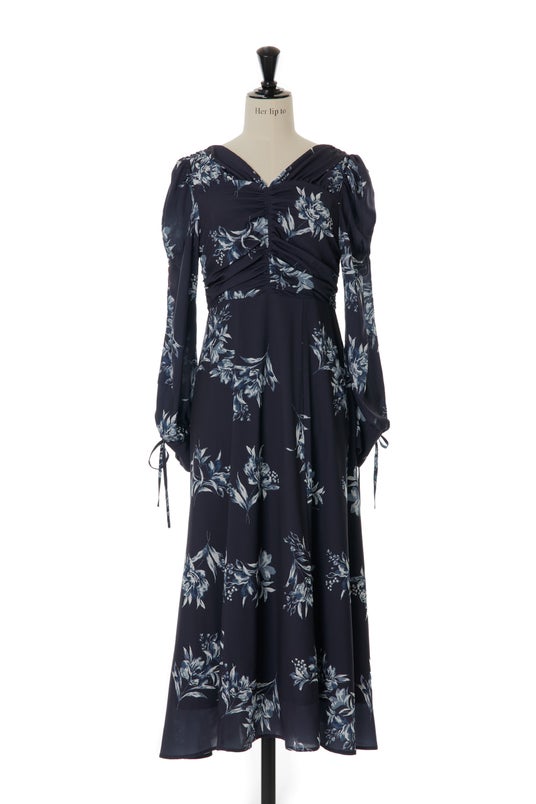 柔らかく流れるような微光沢のデシン素材を使用し、奥行きのあるHer lip toオリジナルフローラルプリントを施しました。立体的な胸元のギャザーディティールは、女性らしいスタイリングを叶えます。