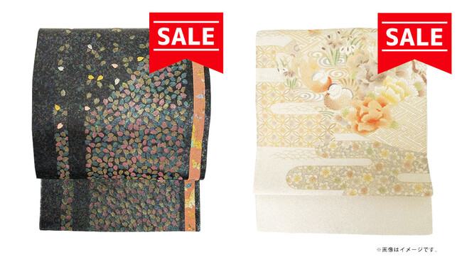 左:袋帯 黒地 金銀糸 青銅箔 桜の花びら 蝶 55,000円(税込)→16,500円(税込)