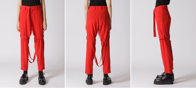 LIMI feuのfeu(火)に因んだ赤、右前身頃にポケット、左身頃にラグランラインのディティール、