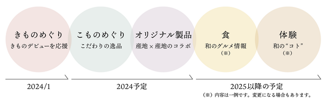 その後、きもの愛好家向けのこだわりの逸品に展開。ゆくゆくは産地と産地がコラボしたオリジナル製品の開発などさまざまな提案を予定しています。