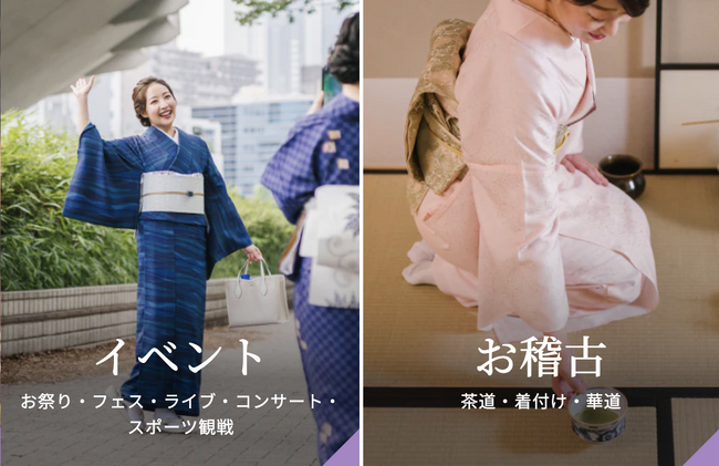 事業内容 きものや帯の販売仲介業。全国で無料の着付け教室を展開(卒業生21万8,000名超)、2024年春は「お試し3回無料着付け体験コース」を全国425教室で開催。