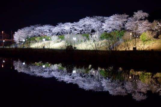 – 夜桜のライトアップ 五十鈴川の水面に映る幻想的な美しい桜もお楽しみください。