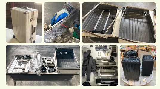 お客様から受け取った製品は、リユースできるものはリユースし、そうでないものは、解体してリサイクルしています。多くのスーツケースは、壊れにくく作られており解体がしづらいものがほとんどです。
