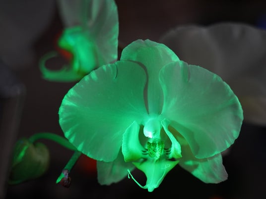 ※「光るコチョウラン」は国立大学法人千葉大学環境健康フィールド科学センターが、NECソリューションイノベータ株式会社および国立大学法人奈良先端科学技術大学院大学の開発した蛍光タンパク質の遺伝子をコチョウランに導入することで開発しました。