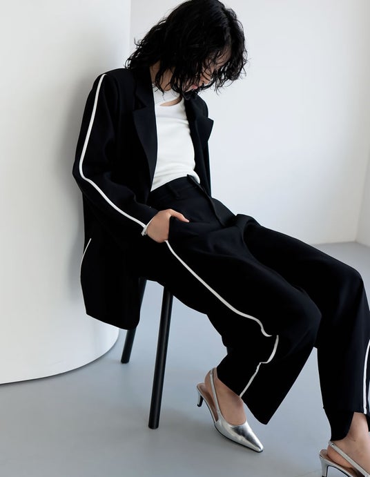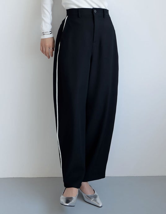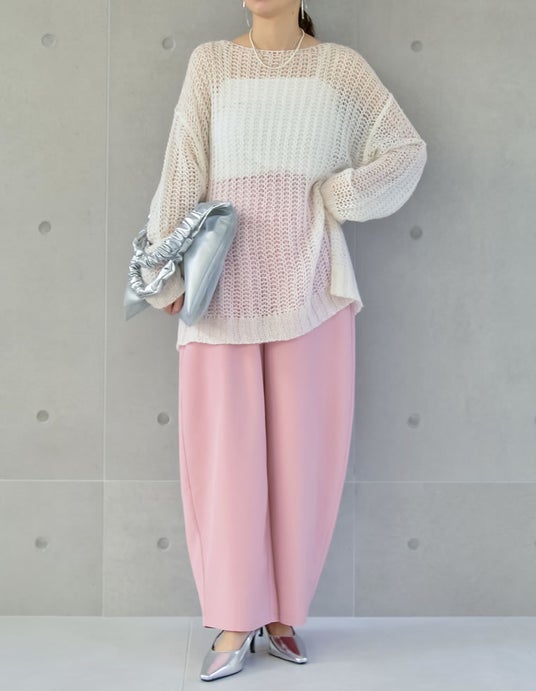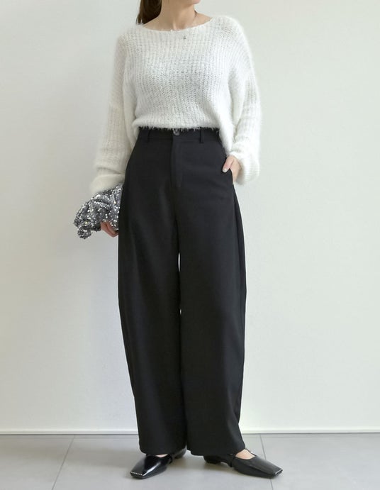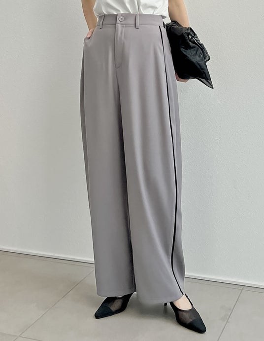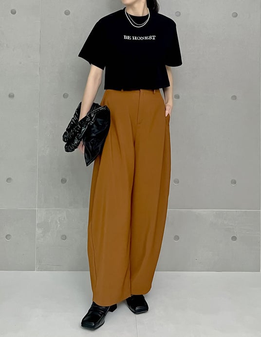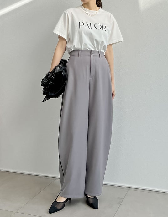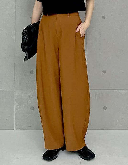洗練されたパンツスタイルを演出するカーブスラックスです。
