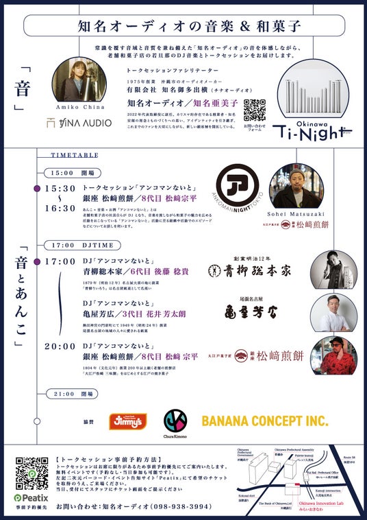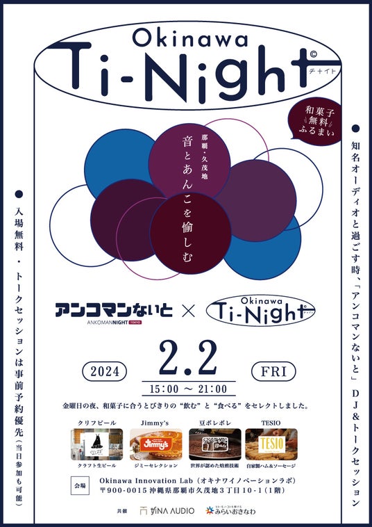 沖縄県のオーディオメーカー・知名御多出横(以下、知名オーディオ)は株式会社みらいおきなわと共に、2024年2月2日(金)に『 Ti-Night(チナイト)×アンコマンないと~ 知名オーディオと過ごす時「アンコマンないと」DJ&トークセッション 』を開催することをお知らせいたします。