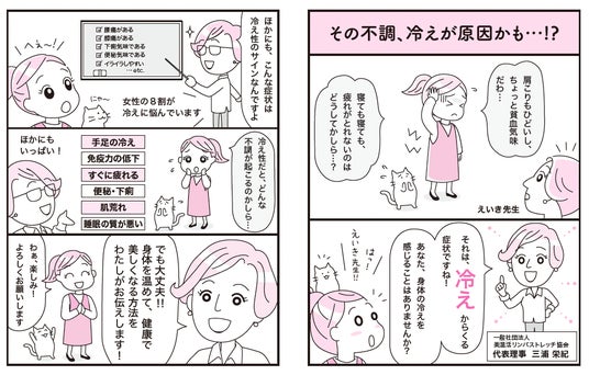 一般社団法人美温活リンパストレッチ協会 代表理事の三浦栄紀(HP: https://bionkatsu.com/ )は、紙の書籍の2冊目となる『カラダ温め 美人図鑑』(星野書房)を、2024年1月10日(水)に発売します。本書は、著者自らが実践してきたたった1分で身体が温まる簡単なツボ押しや呼吸法、ストレッチなど20万人が体験したメソッドを、マンガやイラストでわかりやすく解説しています。