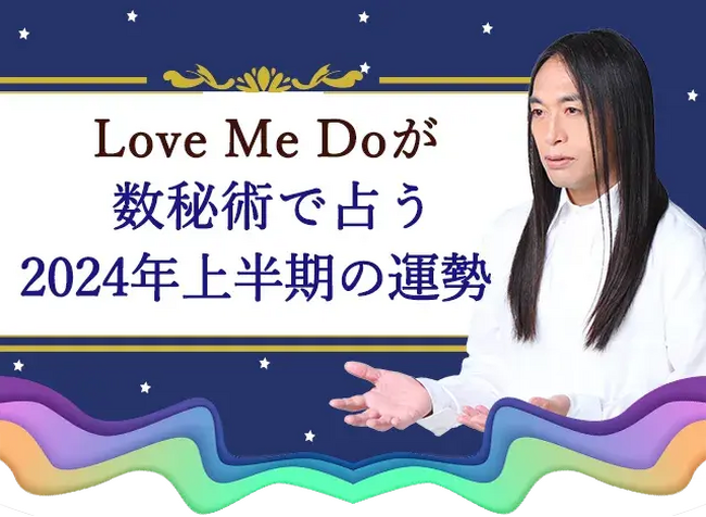 有名人の電撃婚など世間を騒がせるビッグニュースの予言が次々的中して話題沸騰の占い師「Love Me Do」の公式占いサイト『Love Me Do◆絶対数』は、この度「数秘術で占う2024年上半期の運勢」を公開いたしました。本ページは、当サイトへの会員登録がお済みでない方でもお楽しみいただける内容となっています。