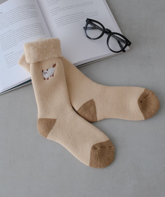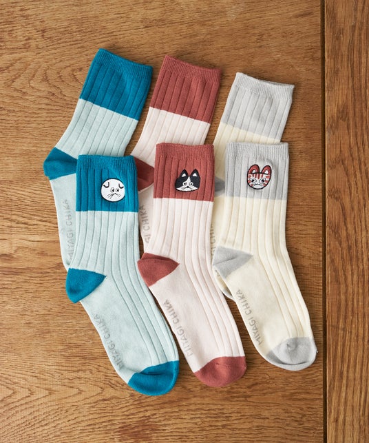 みやぎちか 刺繍バイカラーソックス 各1,100円
