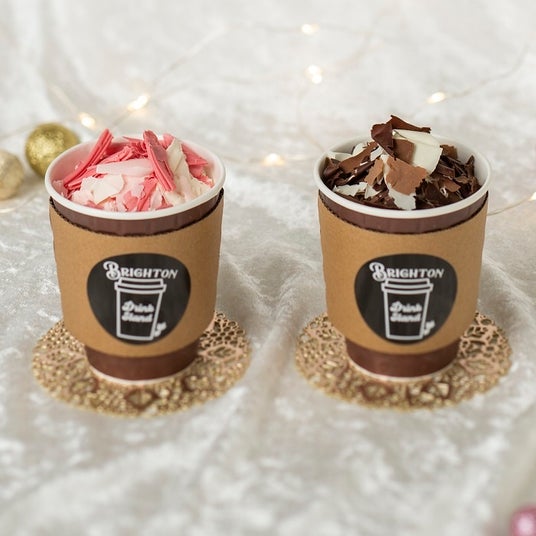 白い恋人パークオリジナルスイーツでは、寒い中でも温まりながらイルミネーションを楽しめるように、ホットドリンクが登場。「いちご(ハート)ミルク」と「バナナ(ハート)ミルク」はペアドリンクとして飲み比べもおすすめです。甘さひかえめな大人の味わいに仕上げた「大人の白い恋人チョコレートドリンク」もご用意しております。