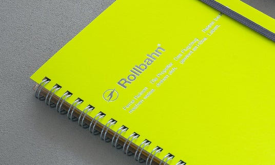 コラボレーションデザインのロルバーン ポケット付メモは、クラフトグレー、ネオンイエローの2色展開。サイズはLサイズです。ザラっとした素材感を感じる表紙を採用し、それぞれ表裏がグレーカラー×蛍光ネオンイエローの、コンビカラーが目を引く一冊。「pitan」のノートホルダーを付けるためのPPパーツを綴じ込んだ、特別仕様のロルバーンです。