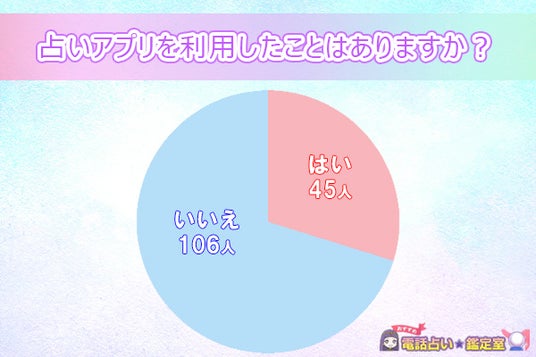 「占いアプリを利用したことがあるか」という質問に対して、45人が「はい」と回答し、106人が「いいえ」と回答しています。