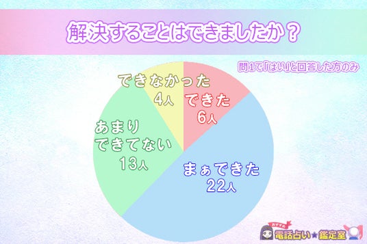 ただ、「できた」と回答したのは6人にとどまったため、占いアプリがユーザーの悩みを完全に解決することは比較的少ない可能性があります。