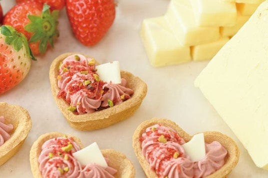 北海道別海町指定酪農家の生乳を100%使用した発酵バターを24%配合したタルト生地にベイクドショコラ生地を重ね、丁寧に焼きあげました。タルト生地の上には、フレッシュで甘酸っぱいストロベリーチョコレートバタークリームをトッピングしています。