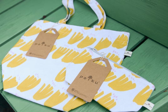 フィンランドの自然の中を散歩するようにデザインを楽しんでもらいたいという願いが込められたブランド「polku(フィンランド語で“小道”)」から届いた、ちょっとしたおでかけにぴったりなチューリップ柄のバッグ・ポーチ。