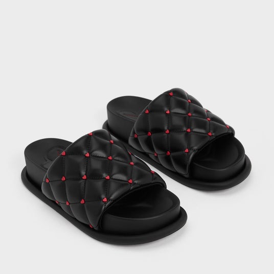 商品名:Dahlia ダリア パッドキルトハートプリントサンダル