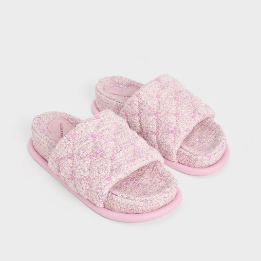 商品名:Dahlia ダリア ツイードキルトハートプリントサンダル