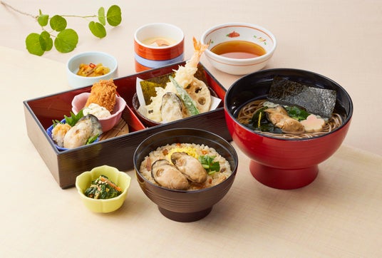 今回のフェアでは、お店で甘辛く丁寧に炊き上げた瀬戸内産の牡蠣を使用した「牡蠣ご飯」や、「牡蠣の天ぷら」「牡蠣そば」「牡蠣の手巻き寿司」「牡蠣雑炊」など、『牡蠣』の美味しさを存分にお楽しみいただける料理をご用意しました。