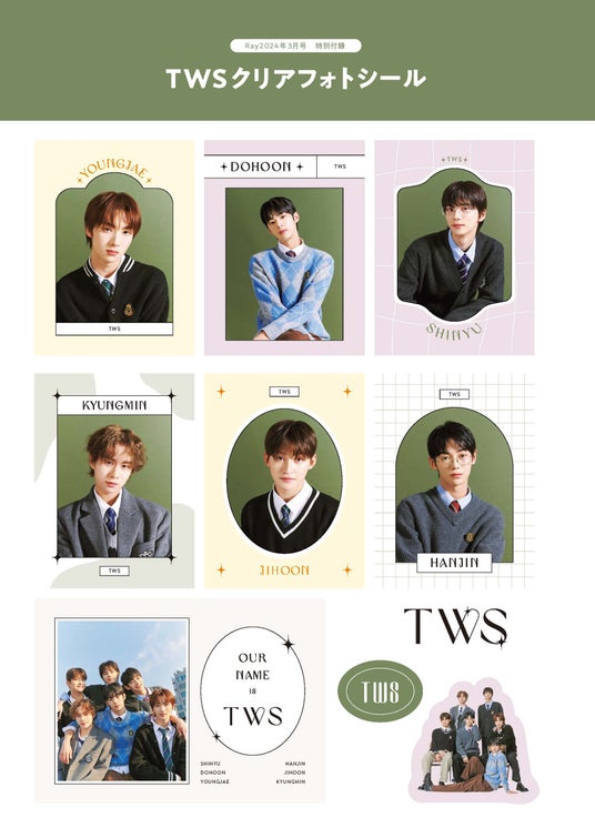 1月22日(月)のデビューを控えて世界中から注目を集める「TWS」を、日本の全メディアに先駆けて『Ray』がご紹介します!『Ray』読者と同世代の2003年~2007年生まれの彼らが、学生時代を連想させる【放課後】をテーマとしたトラッドスタイルで登場します。カバーボーイ企画では、ソウルの街で撮り下ろしたフォトアルバム風のビジュアルを16ページに渡って贅沢にお見せするとともに、メンバーのプロフィールやインタビューがぎゅっと詰まった4ぺージを加えた、全20ページの大特集でお届けします。
