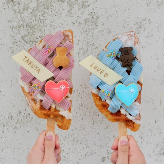 ワッフル型のクロワッサン“クロッフル”をベースにクリームやアイシングクッキーなどのトッピングをセレクトして、推し色クロッフルをオーダー。