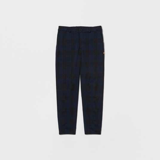 ダンボール素材を使用したロングパンツ。シーズンを象徴するタータンチェック柄でジョガータイプのシルエットです。