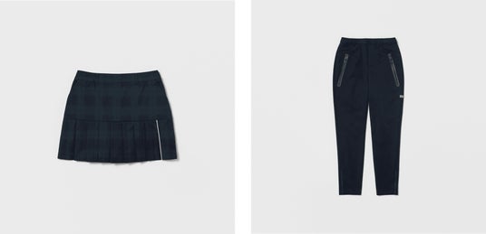 フロントはシンプルなプリーツ仕様、バックはプリーツが段になった仕様のスコート。